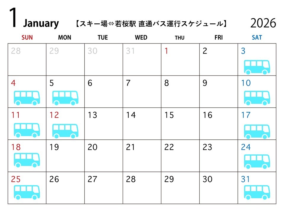 年始1月3日から土日祝はスキー場⇔若桜駅前 100円バスの直行便が運行